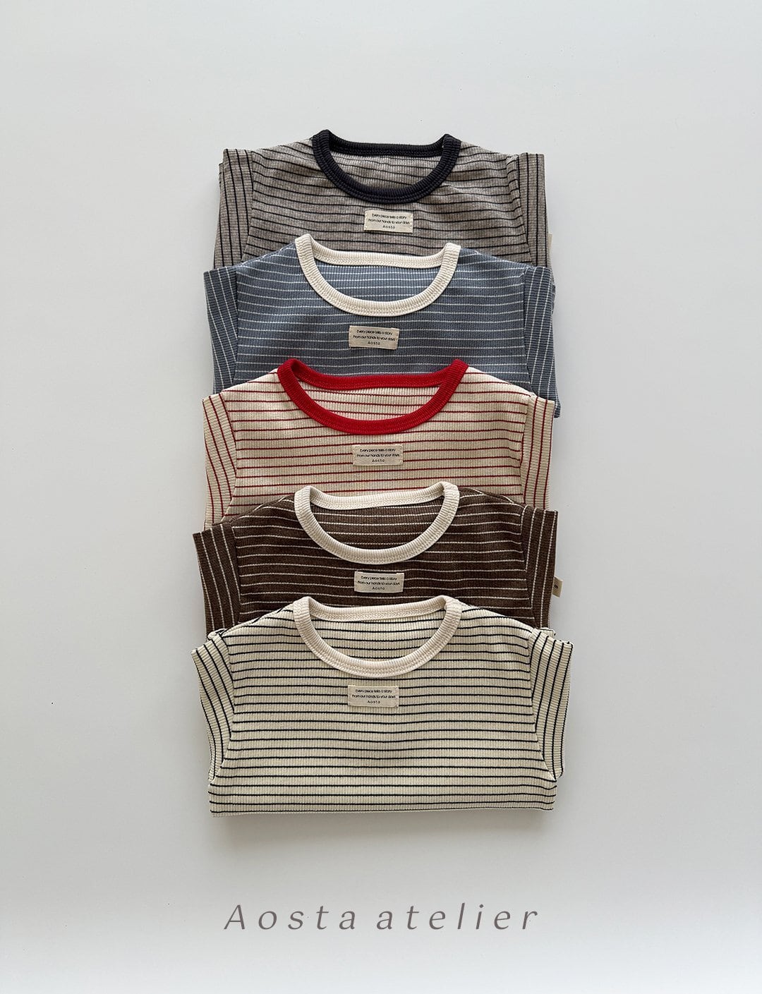 韓国子供服ブランド Aosta(アオスタ) から、デイリー使いにぴったりの MomentボーダーリブTシャツ が登場。