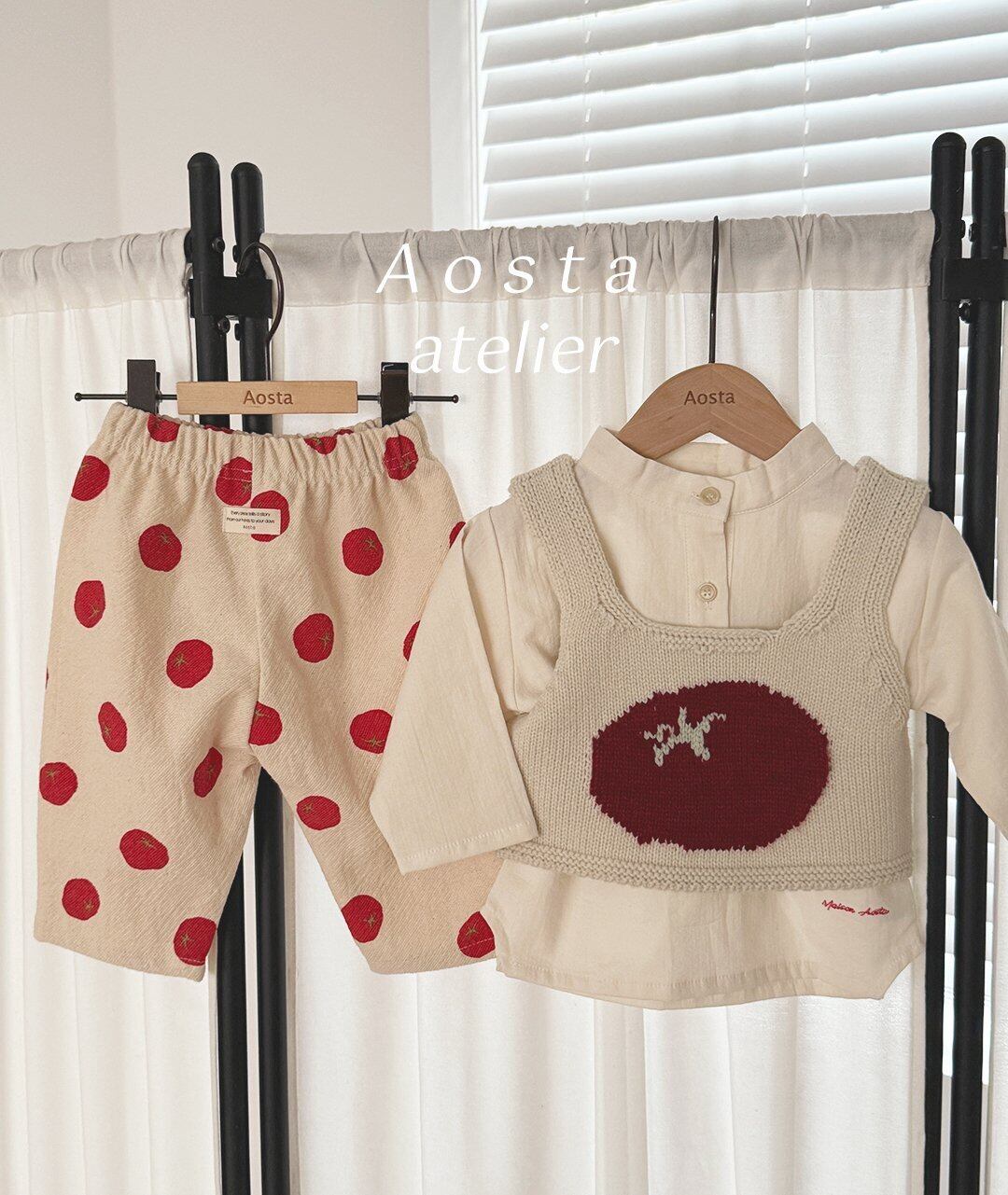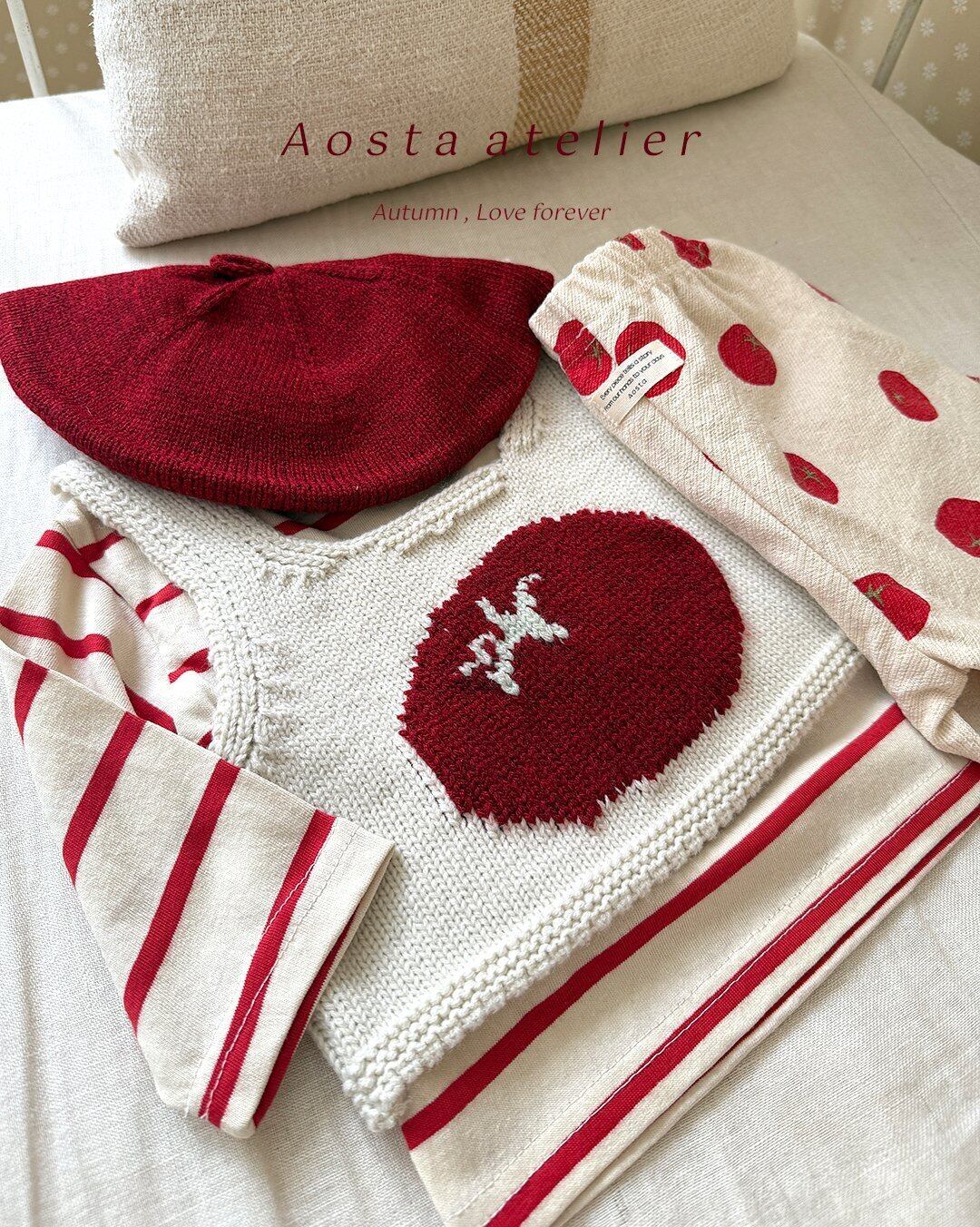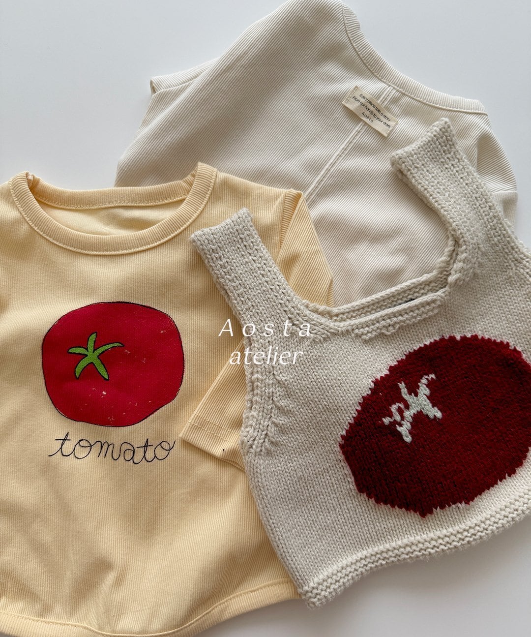 韓国子供服ブランド Aosta(アオスタ) より、ユニークで可愛らしい トマトデザインのニットベスト が登場。