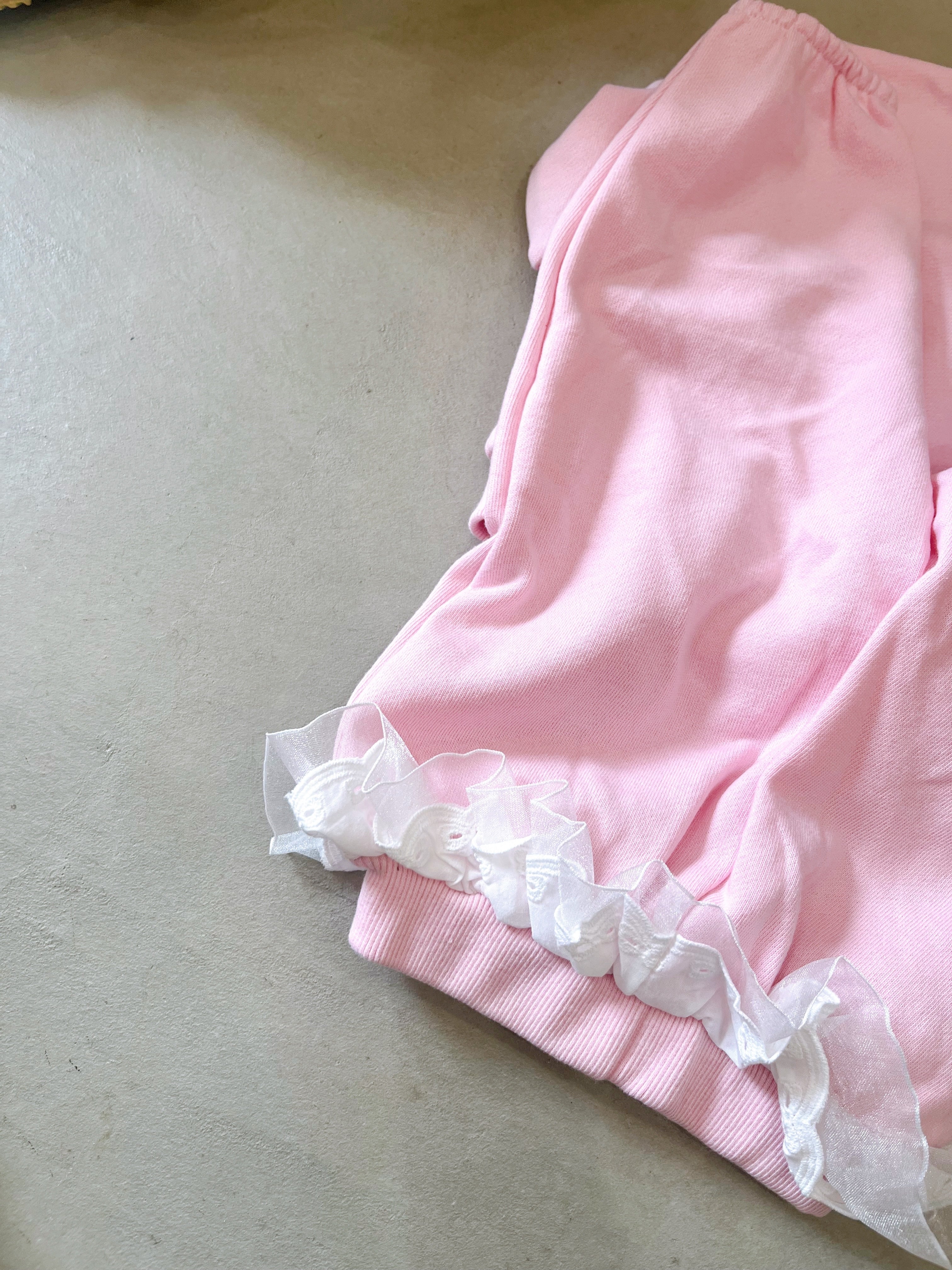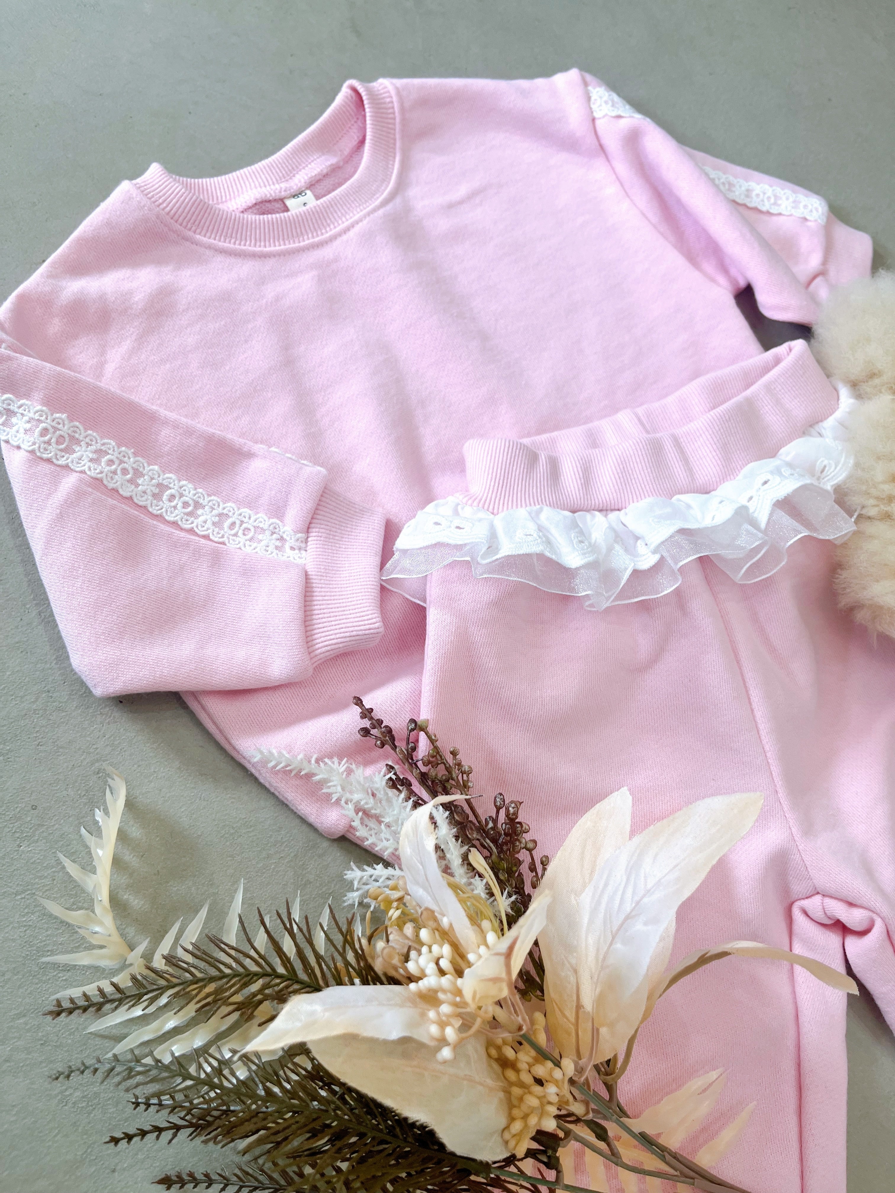 【ab】ガーリーレーススウェットセットアップ ピンク 70cm