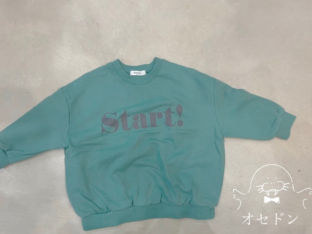 大きめの「Start!」ロゴが目を引く、シンプル&トレンド感のあるスウェットトップス。
