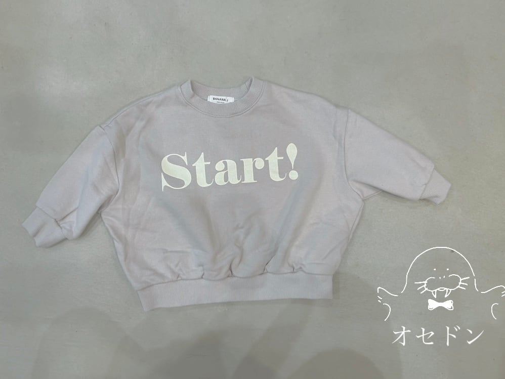 大きめの「Start!」ロゴが目を引く、シンプル&トレンド感のあるスウェットトップス。