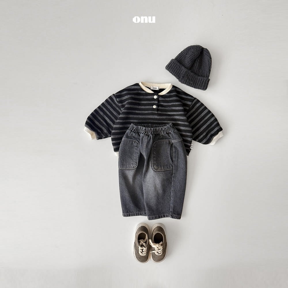 予約販売【ONU】ボーダーボタン裏起毛スウェット ブラック 80〜120cm 2025 WINTER 韓国子供服