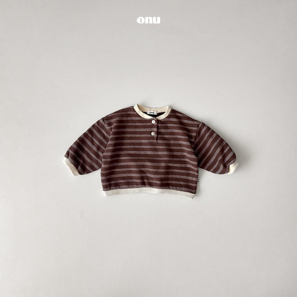 予約販売【ONU】ボーダーボタン裏起毛スウェット ブラウン 80〜120cm 2025 WINTER 韓国子供服