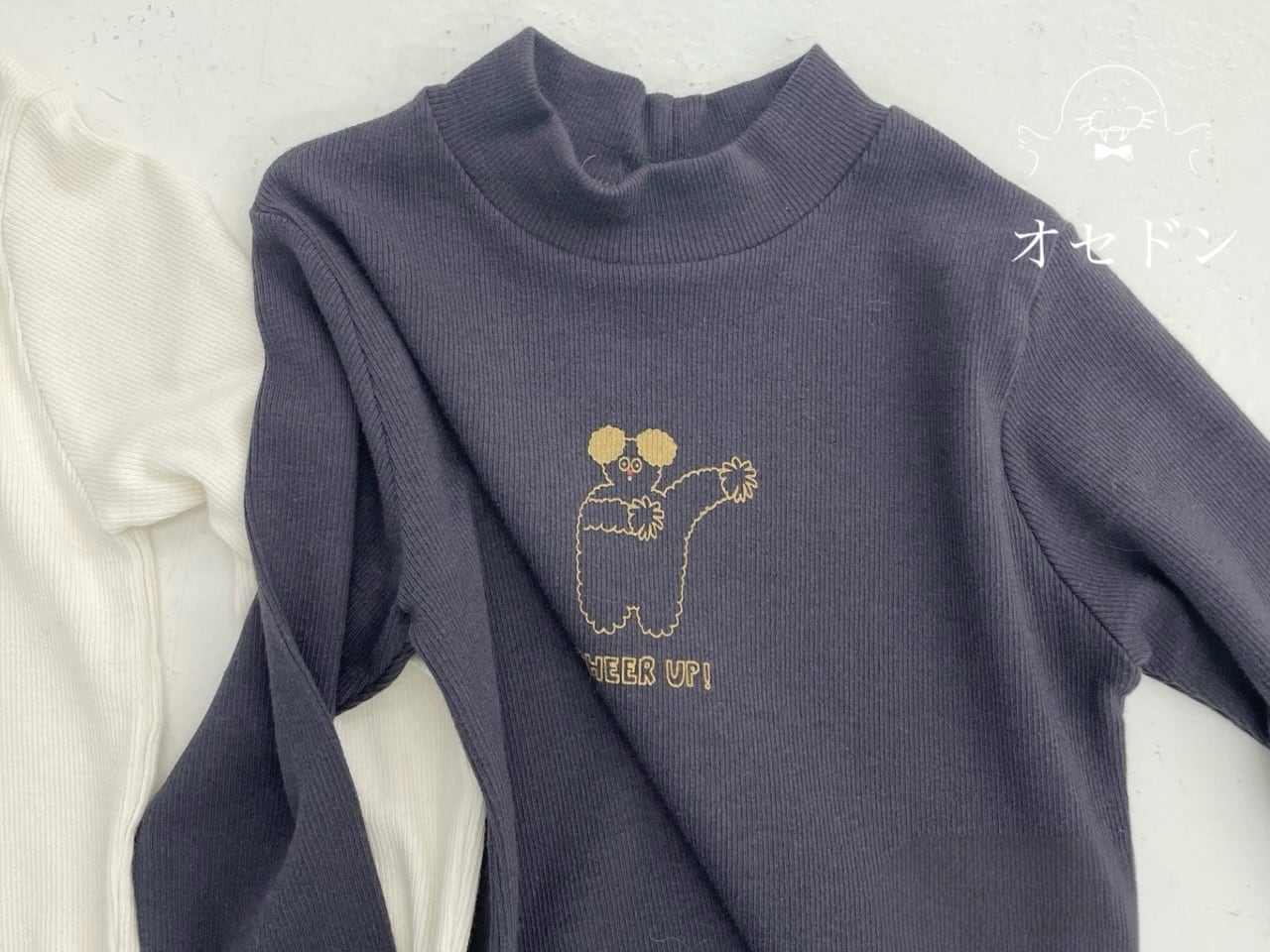 「CHEER UP!(チアアップ)」の可愛い刺繍デザインが、トップスの下に重ね着してもワンポイントに。