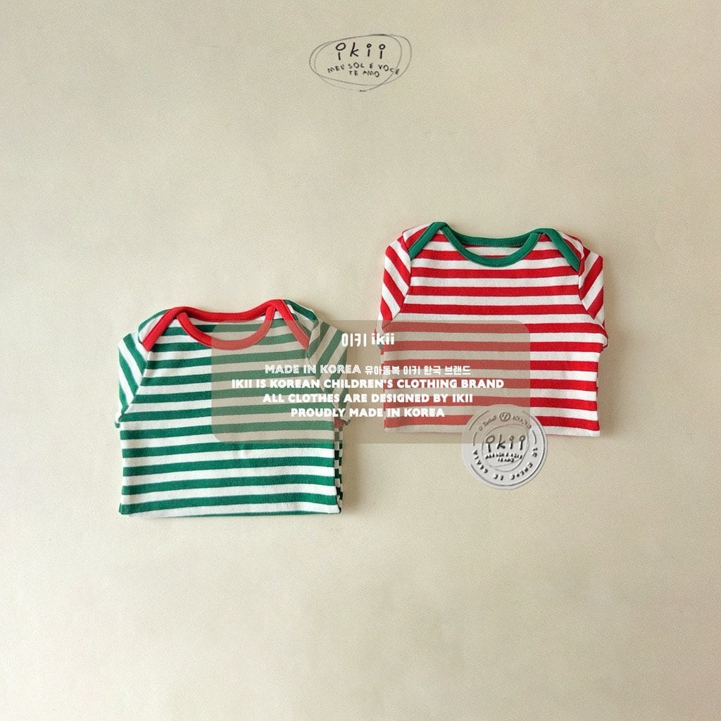 ・ikiiの冬の人気アイテム、クリスマスカラーのボーダーロンパース2点SETです