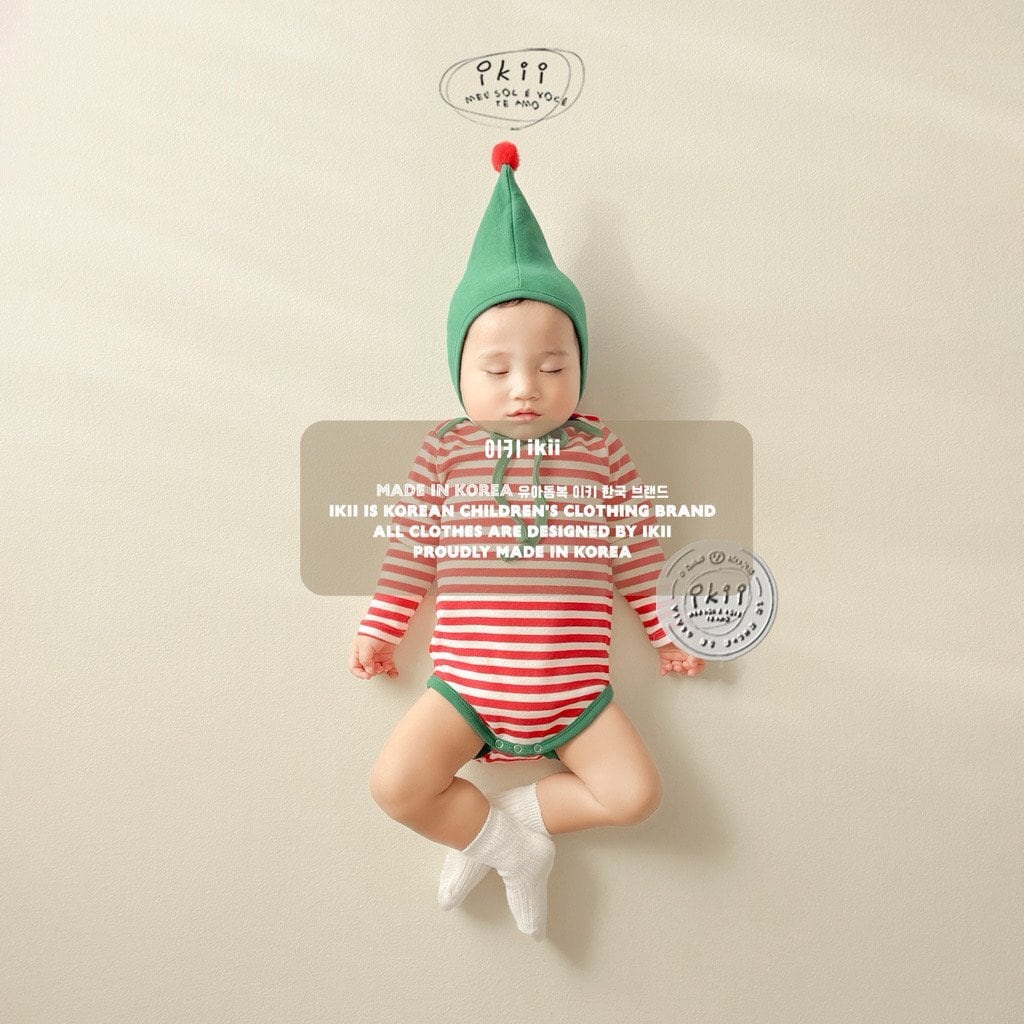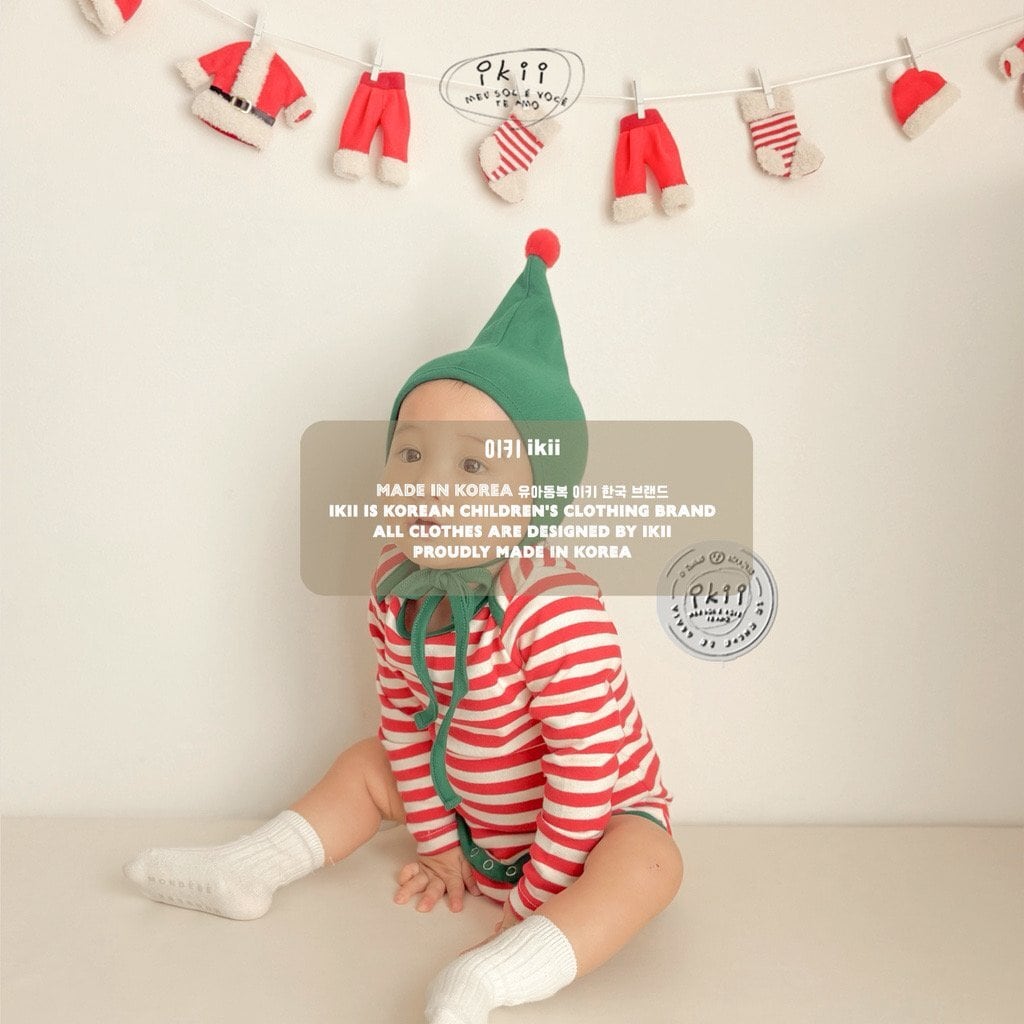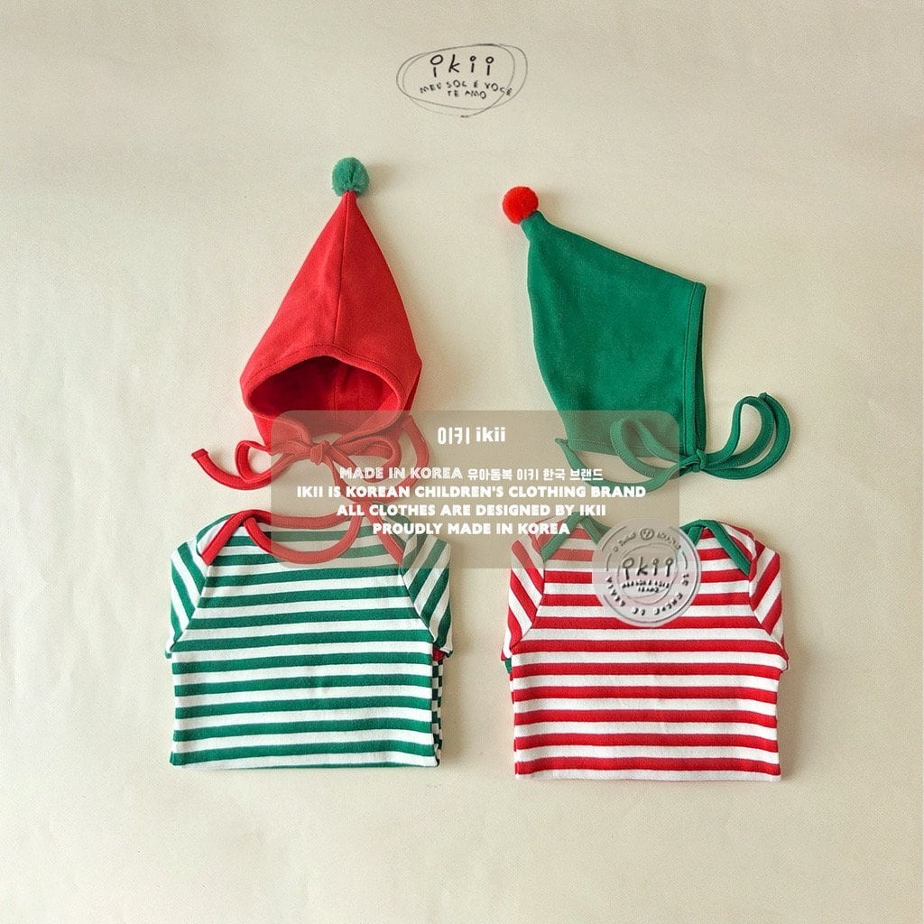 【ikii】 St.クリスマス ボーダーロンパース2点セット Red(グリーンハット)(70/80/90cm)