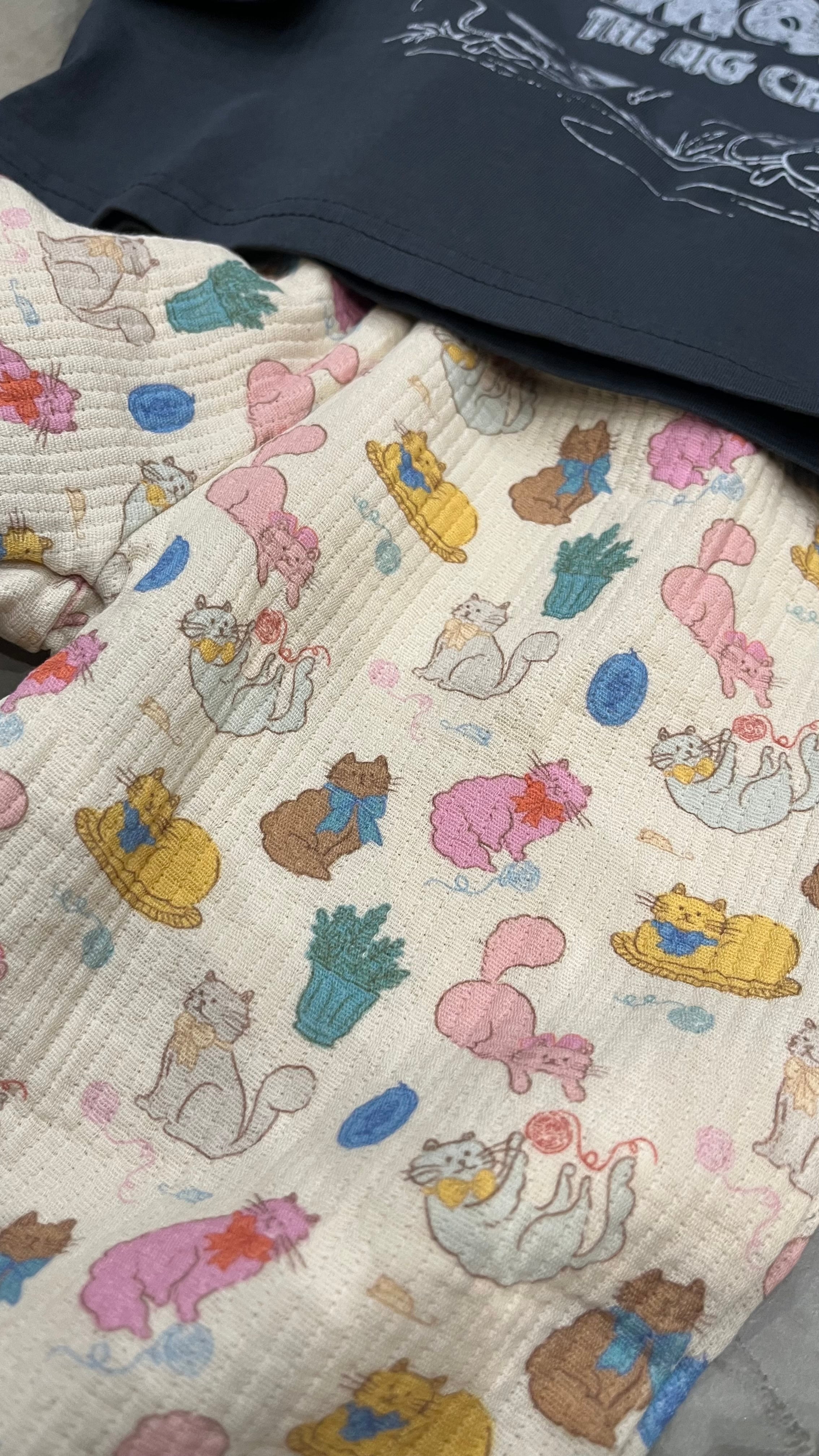 この生地、本当に珍しくて「厚手ガーゼみたいなのにしっかりしてる」不思議な可愛さがあります。