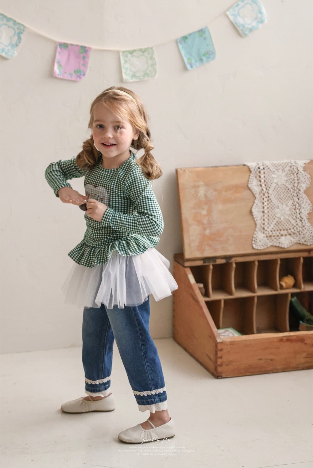 チェック柄やフリル、刺繍などを取り入れたガーリーな世界観で、