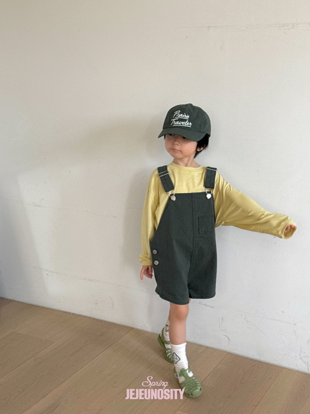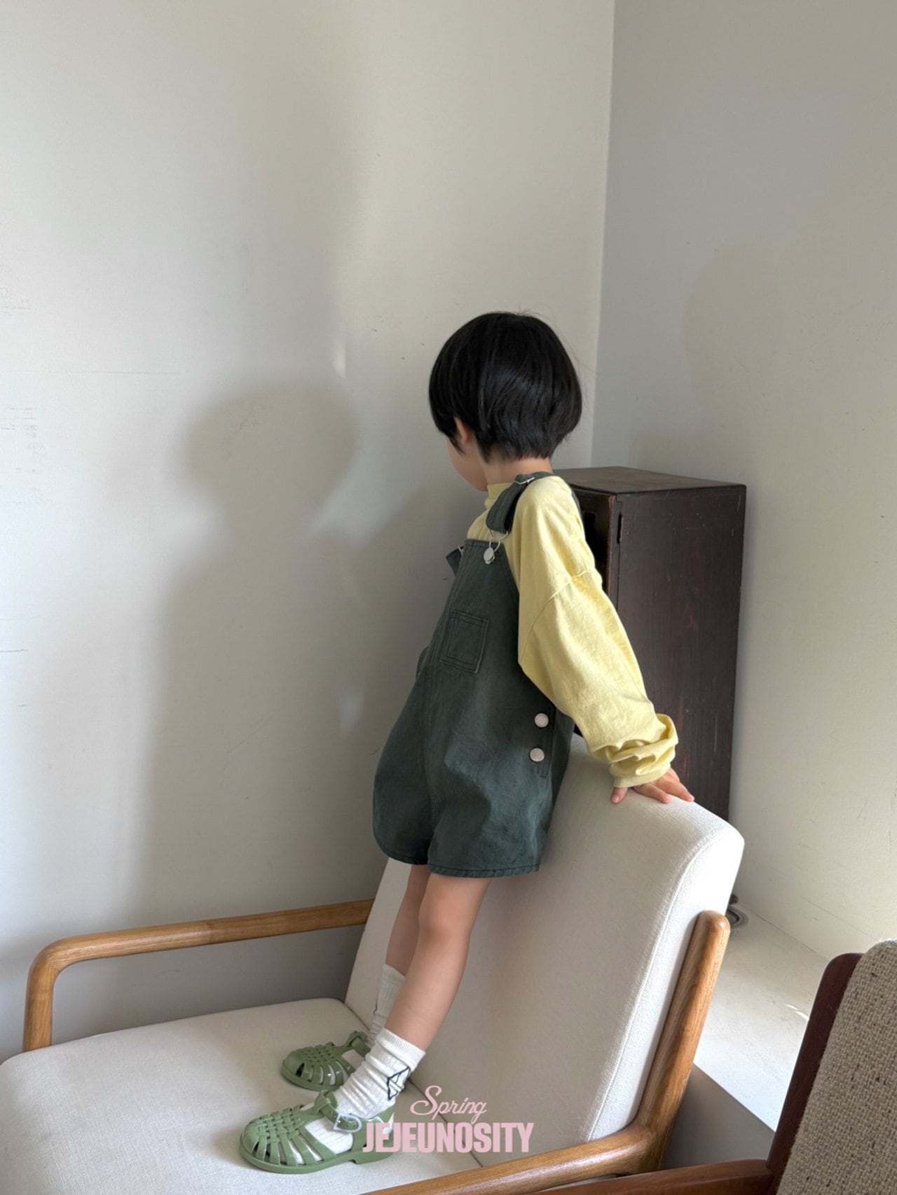 【即納】【JEJEUNOSITY】コットンベリーショートオーバーオール/グリーン(80~120cm)