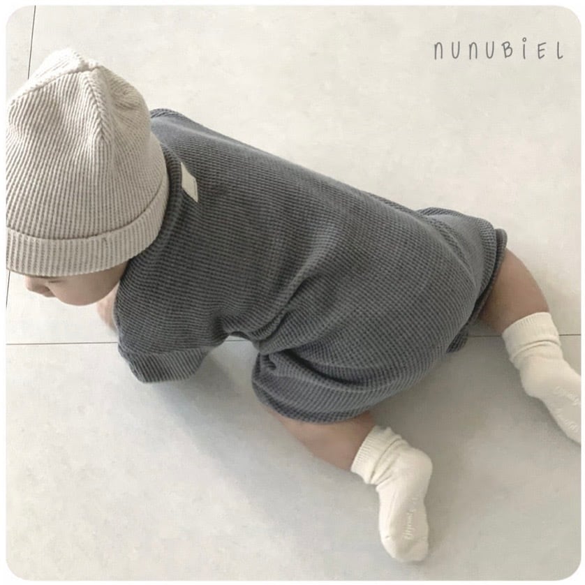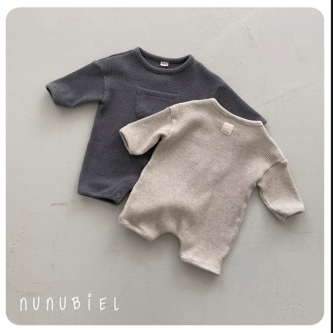 凹凸のあるワッフル生地が可愛い、nunubiel人気の「クロッフルシリーズ」のロンパースタイプ。