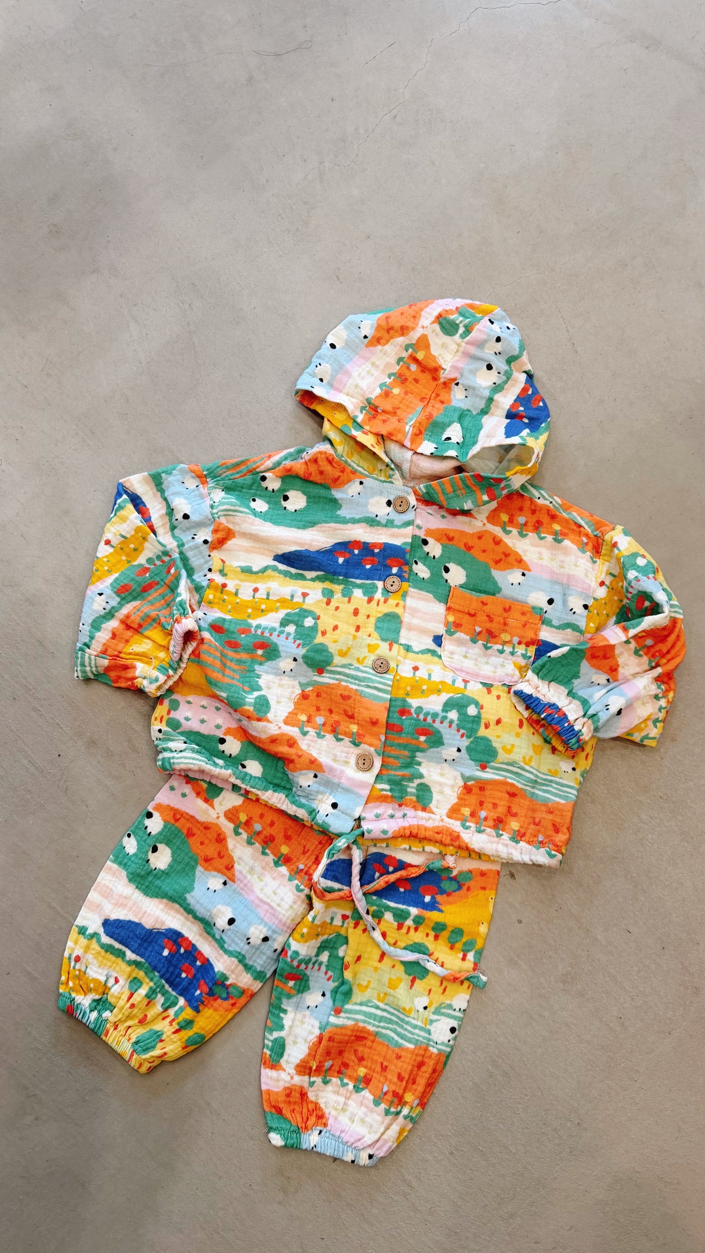 【Hugbebe】 ふわふわガーゼコットンパンツ アニマルファーム (80–120cm)