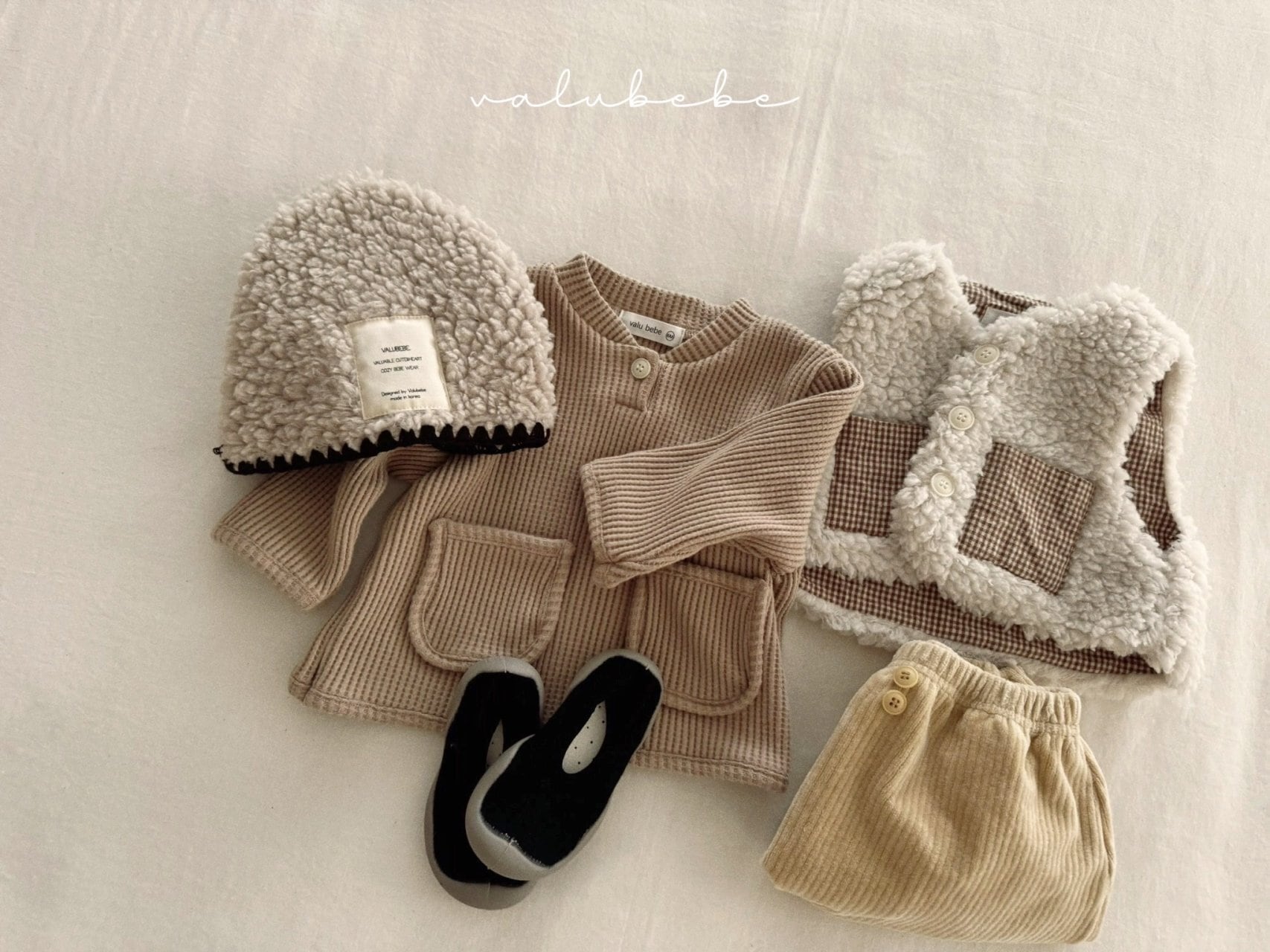 【valu bebe】ワッフルポケットカットソー ライトブラウン 70〜110cm 241108