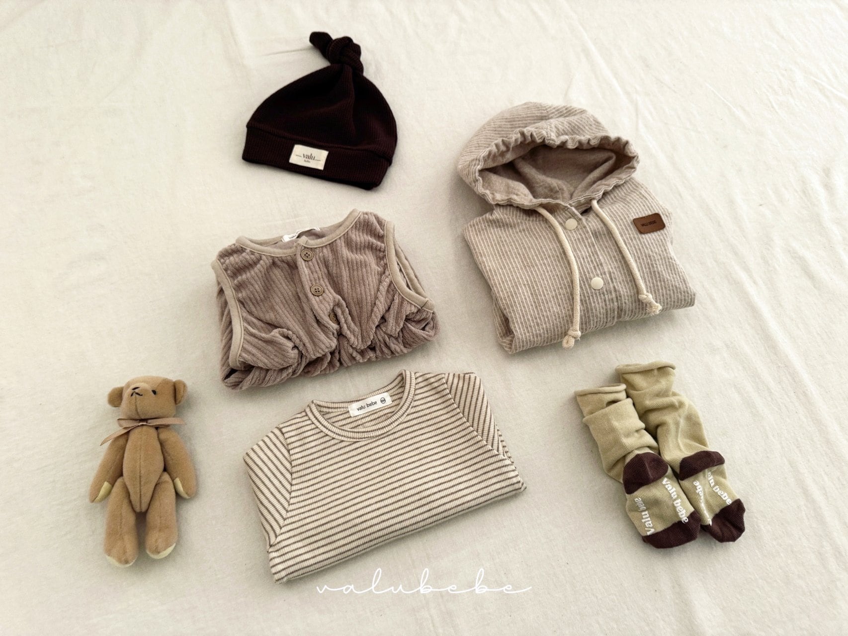 【valu bebe】ソフトパイル地リブオールインワン ベージュ 70〜80cm